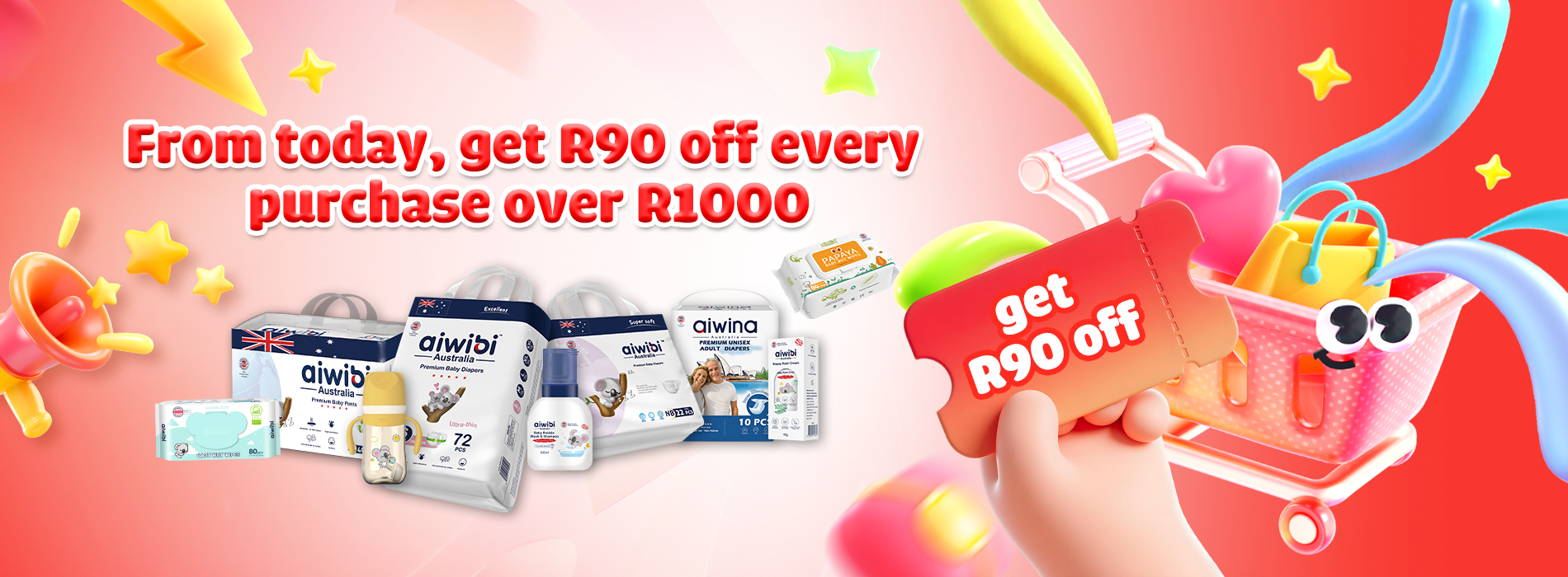 From today, get R90 off every purchase over R1000.