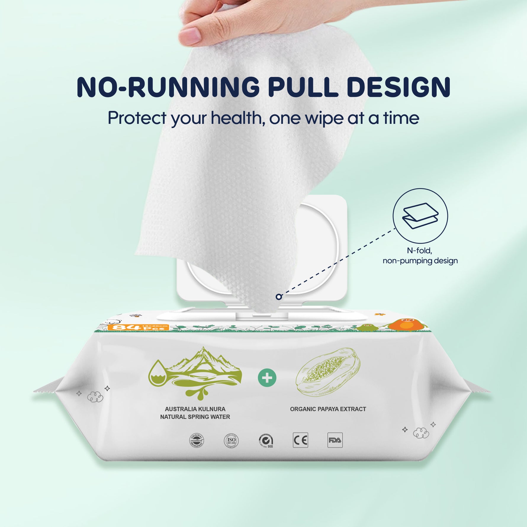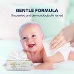 Our baby wipes are crafted from premium, biodegradable fibers and are enriched with a gentle, 99% natural formula that is free from harsh chemicals, fragrances, and alcohol.
