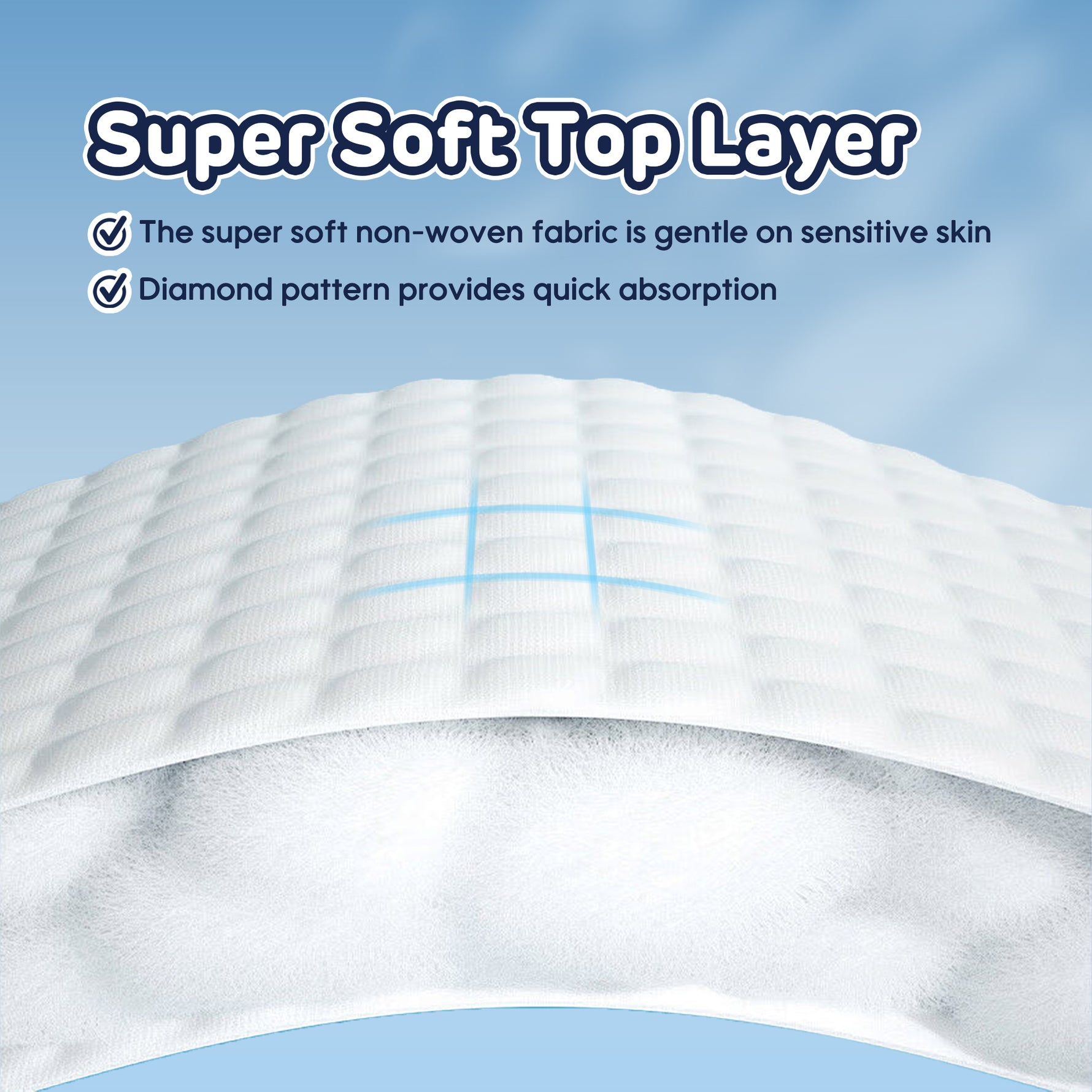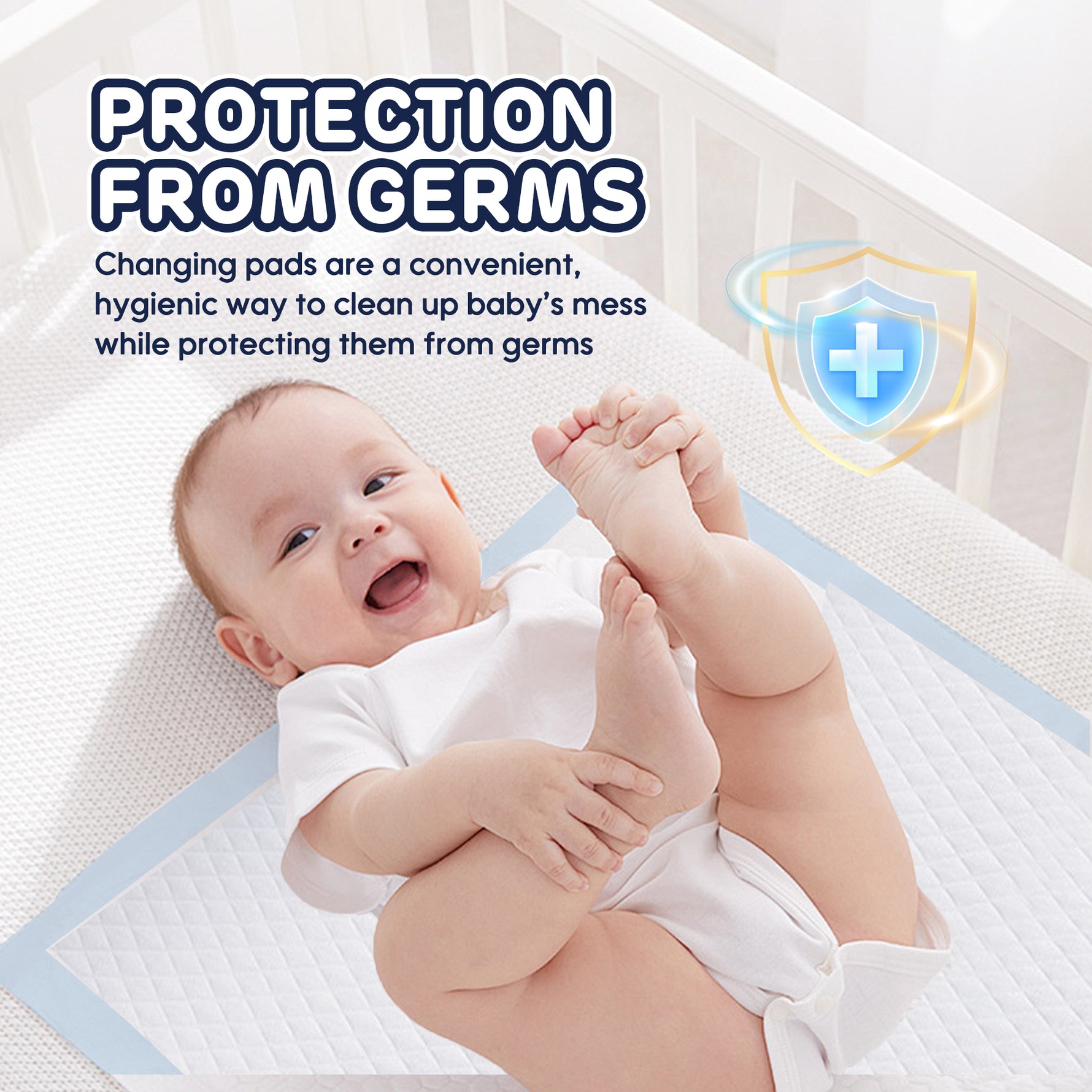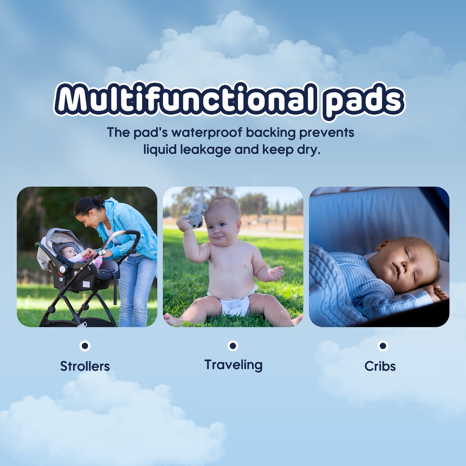 Unit price perAiwibi Baby Changing Pads provide a hygienic solution for quick clean ups while protecting your baby from germs. Lightweight and travel-friendly, these disposable pads feature a waterproof backsheet to prevent leaks. The super soft top layer is gentle on sensitive skin, with a diamond pattern for quick absorption. Designed with a five-layer construction, they are perfect for strollers, traveling or cribs.