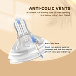 Unit price perMade from lightweight, BPA-free Tritan, Aiwibi Baby Bottle is shatterproof and durable. The breast-like soft silicone nipple minimizes air intake and nipple confusion, while vertical lines keep its shape. An advanced anti-colic system reduces bloating, and the inverted triangle vent valve ensures smooth, leak-free flow. With a unique handle for easy grip and a gravity ball design for 360°free suction, it includes a nipple brush and replacement nipple. Various nipple flow rates and bottle sizes allow the bottle to grow with baby.