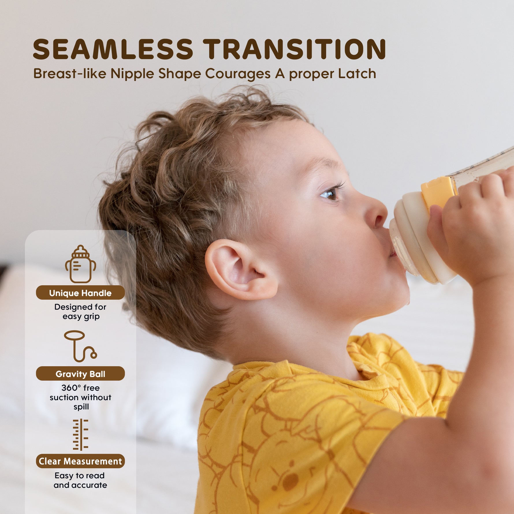Yes! Our bottles are designed with an ergonomic shape, making it easier for little hands to grip. They're lightweight too, so your baby can hold and feed with confidence as they grow.